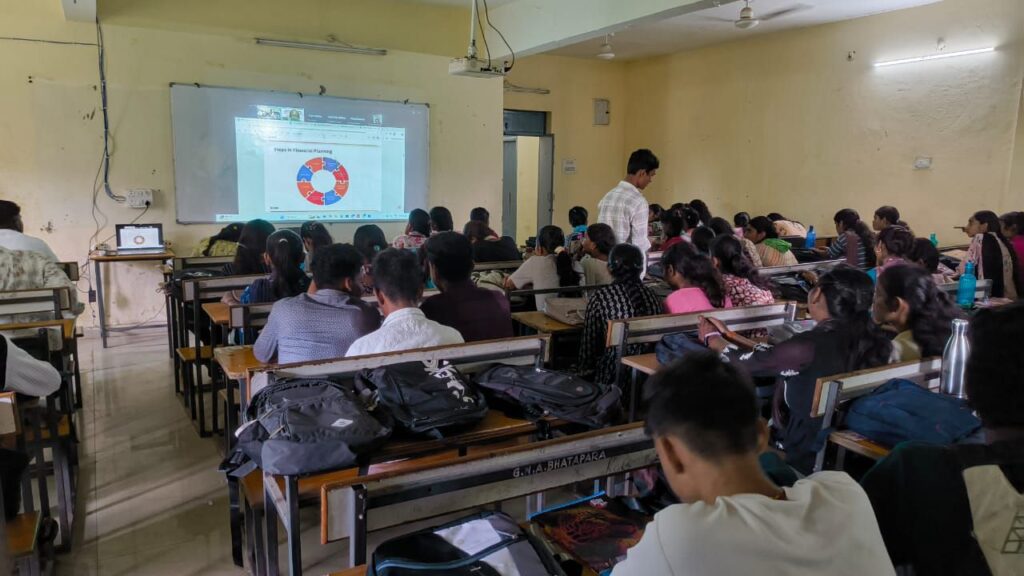 आपने विद्यार्थियों को रूपये का महत्व समझाते हुये वक्तव्य की शुरूआत की। फिर स्टाॅक मार्केट, शेयर, वित्तीय प्रतिभूतियाँ, म्यूचुअल फण्ड, इत्यादि विषयों पर महत्वपूर्ण जानकारी प्रदान की और बताया कि वित्तीय सुरक्षा हेतु यथाशीघ्र विनियोग प्रारंभ करना उचित होगा।कार्यक्रम से लगभग 125 विद्यार्थियों लाभान्वित हुए। कार्यक्रम का संचालन रोहन अग्रवाल ने किया। तकनीकी सहयोग मनीष कुमार सरवैया ने किया। अंत में आभार प्रदर्शन गुप्तेश्वर साहू ने किया। कार्यक्रम में महाविद्यालय के अधिकारीगण उपस्थित थे। विद्यार्थियों ने कार्यक्रम के प्रबंध में सक्रिय भूमिका निभाई।