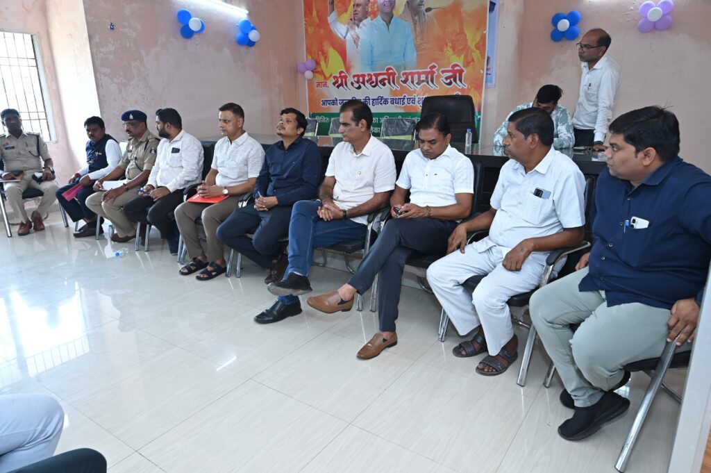 बैठक में नगर की यातायात व्यवस्था को सुगम बनाने, अतिक्रमण मुक्त मार्ग बनाने, आगामी दुर्गा उत्सव और दशहरा त्यौहारों को लेकर कई महत्वपूर्ण बिंदुओं पर गहन चर्चा हुई।