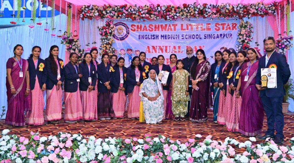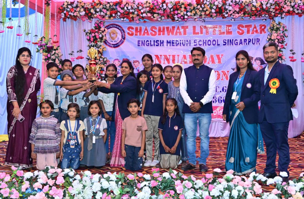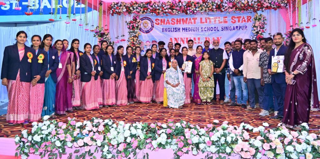 भाटापारा/khabar-bhatapara.in:- शाश्वत लिटिल स्टार इंग्लिश मीडियम स्कूल सिंगारपुर में वार्षिकोत्सव मनाया गया।इस कार्यक्रम में मुख्य अतिथि के रूप में पूर्व विधायक भाटापारा एवं भाजपा प्रदेश उपाध्यक्ष माननीय शिवरतन शर्मा जी उपस्थित रहे।सिंगारपुर के सरपंच महोदय कनक मनहरे , मंडल अध्यक्ष श्री डब्लू सिंह ठाकुर, पवन वर्मा सर , जनपद सदस्य सुंदर साहू सिंगारपुर, एवं स्कूल के डायरेक्टर श्री छगन वर्मा, प्रिंसिपल मिस अंजली वर्मा एवं समस्त स्कूल स्टाफ आईबीसी संवाददाता कोमल शर्मा भी उपस्थित रहे। वार्षिकोत्सव में स्कूल के बच्चों ने बढ़ चढ़ कर हिस्सा लिया । बच्चों ने नशा मुक्ति को नाटक के रूप में प्रदर्शित कर समाज को नशे से दूर रहने का संदेश दिया एवं बालिकाओं द्वारा नृत्य के माध्यम से नारी शक्ति को उजागर किया गया साथ ही बच्चों द्वारा साइंस एग्जिबीशन भी रखा गया था जिसमें उन्होंने विभिन्न प्रकार के वर्किंग मॉडल तैयार किए थे जिसकी सराहना अतिथियों द्वारा की गई । भाटापारा विकासखंड के कबड्डी खो-खो एवं कराटे खेलों में नेशनल खेलकर आए विभिन्न विद्यालयों से बच्चों को शाश्वत लिटिल स्टार स्कूल मैनेजमेंट सिंगारपुर के द्वारा सम्मानित किया गया, साथ ही एनुअल स्पोर्ट डे में सभी विजेता बच्चों को मेडल एवं सम्मान पत्र का वितरण अतिथि गणों के द्वारा किया गया। ओवरऑल चैंपियन का कप संस्था के डायरेक्टर द्वारा प्रदान किया गया जिसमें रेड हाउस प्रथम, येलो हाउस द्वितीय, ग्रीन हाउस तृतीय और ब्लू हाउस चतुर्थ स्थान पर रहे। परफेक्ट अटेंडेंस, अन्य जिले एवं राज्य स्तरीय खेलों में विजई हुए बच्चों एवं उत्कृष्ट प्रदर्शन के लिए भी बच्चों को सम्मानित किया गया।शाश्वत लिटिल स्टार स्कूल सिंगारपुर में उत्कृष्ट पाठन एवं स्कूल मैनेजमेंट के लिए पाँच शिक्षकों को प्रतीक चिन्ह एवं प्रमाण पत्र देकर डायरेक्टर के हाथों सम्मानित किया गया। उत्कृष्ट पाठन के लिए शिव कुमारी साहू मैडम, निर्मला पटेल मैडम, प्रिया तिवारी मैडम एवं स्कूल मैनेजमेंट के लिए उमा गोस्वामी मैडम एवं स्पोर्ट्स मैनेजमेंट के लिए ऋषभ सिंह चौहान को सम्मानित किया गया। इस कार्यक्रम में विद्यालय से नैशनल खेलने वाले बच्चों को मेडल एवं प्रशस्ति पत्र देकर सम्मानित किया गया।यह कार्यक्रम स्कूल के प्रिंसिपल के अध्यक्षता में सम्पन्न हुआ।