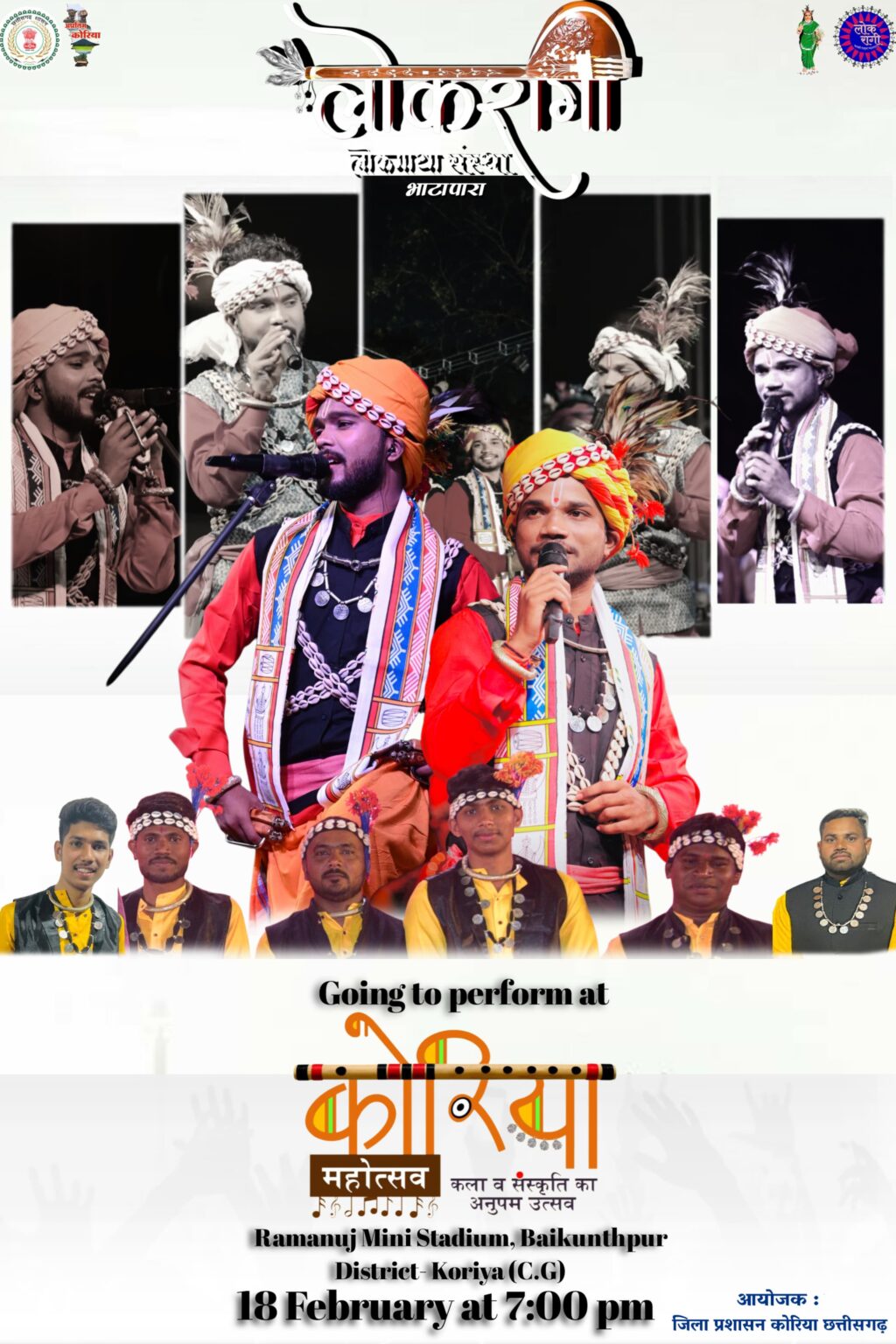प्रांजल सिंह राजपूत के नेतृत्व में लोकरागी संस्था भाटापारा द्वारा कोरिया महोत्सव बैकुंठपुर में भरथरी गायन एवं पारंपरिक लोकगीतों की प्रभावशाली प्रस्तुति दी गई। तीन दिवसीय यह सांस्कृतिक आयोजन 17, 18 एवं 19 फरवरी 2026 को भव्य रूप से संपन्न हुआ।